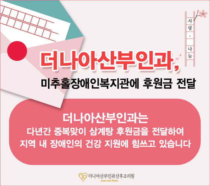 더나아산부인과, 미추홀장애인복지관에 후원금 전달